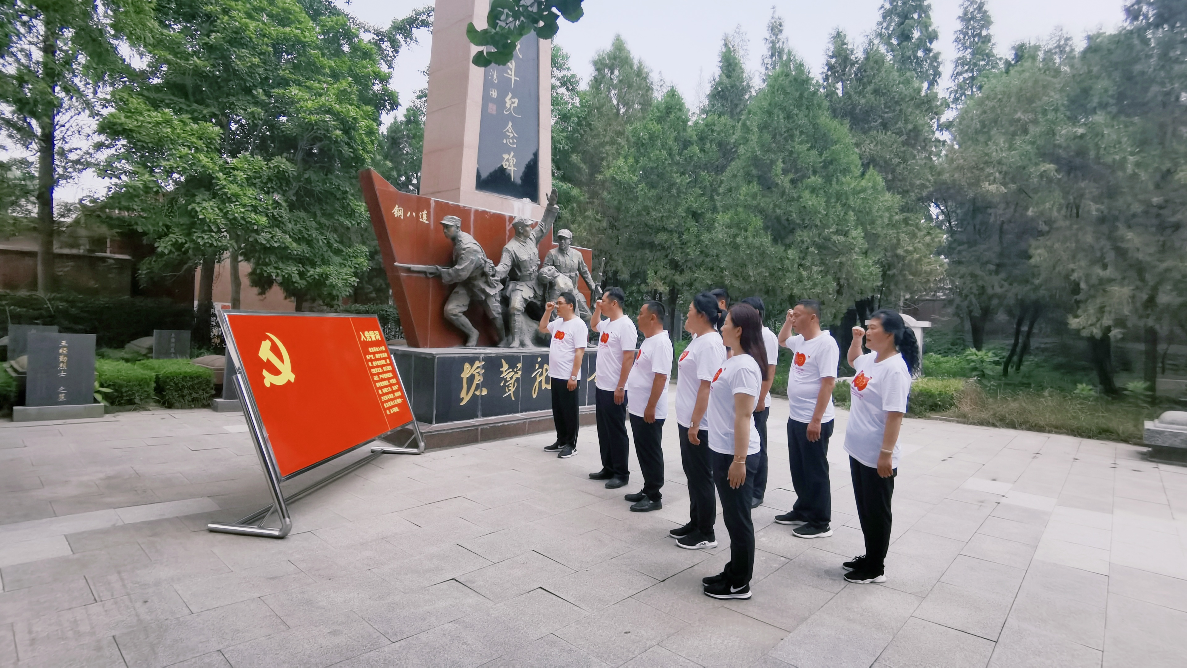 在中國共產(chǎn)黨成立100周年之際,以中國共產(chǎn)黨的根本宗旨“全心全意為人民服務(wù)”為重要指示,以馬克思列寧主義、毛澤東思想、鄧小平理論、“三個代表”重要思想、科學(xué)發(fā)展觀、習(xí)近平新時代中國特色社會主義思想為行動指南。全體黨員在革命先烈紀念碑前,握起右拳莊嚴的重溫了入黨誓詞。并對偉大的中國共產(chǎn)黨和偉大的祖國母親送上最真摯的祝福。
